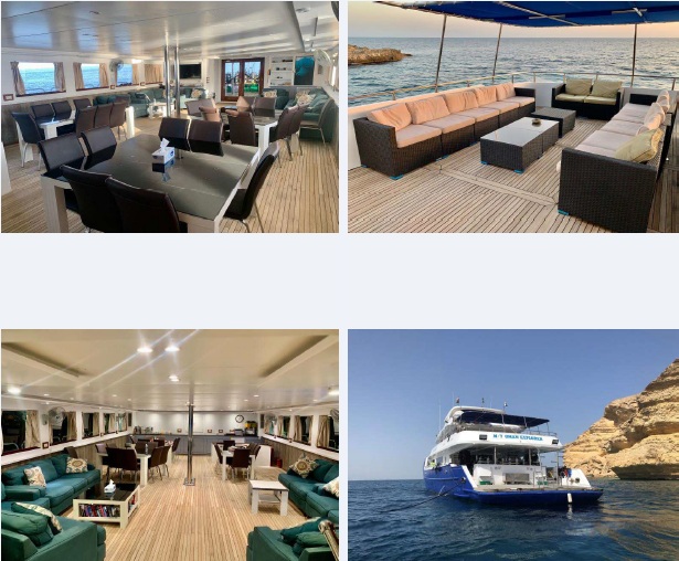 Il M/y Oman Explorer dispone di un ampio ponte immersioni, un salone clima zzato e un solarium con aree relax